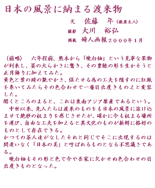 有名な京都の呉服屋さんからのご注文をいただき、こうして俵屋様の正月飾りの一つに加えて頂きましたこと、生産者として誇りに思います。